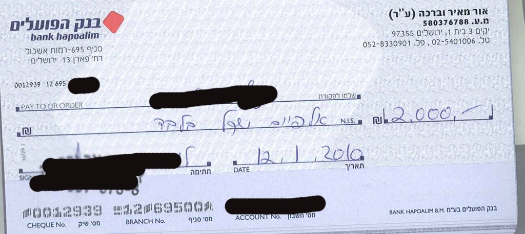a family be in need of electrical appliances, they are to submit to us in writing their needs and Ohr Meir & Bracha will make arrangements for a new appliance to be delivered to their home