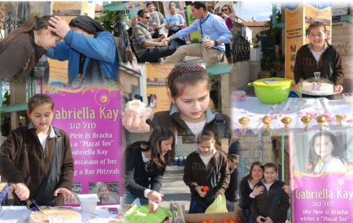 You are invited to celebrate a Bar or Bat Mitzvah with Ohr Meir & Bracha: The Terror Victims Support Center. Here is a glimpse of Chana Fine’s Bat Mitzvah celebration sponsored by her family and hosted by Ohr Meir & Bracha, which took place in August 2010. The Simcha was celebrated in a traditional Sfardi style complete with a decorated tent, throne on which she was carried, and henna. The tent was glamorous, decorated with elaborate rugs, glistening vessels, and a golden throne. The food, included various types of breads, blintzes, noodles, cakes, fruits, etc., which was delicious and served to her family, friends, and children of families affected by terror. Everyone was given traditional Sfardi garb to wear and everyone had fun as they dressed and saw their friends wearing Sfardi robes and hats. Chana was then carried in on a throne, held above the heads of all the guests. Henna was then mixed and applied to the hands of many children, leaving them a mark on their skin that would stay with them for weeks and serve as a reminder of the wonderful event. As part of Chana’s initiation as a Bat Mitzvah she and the other women present took part in the Mitzvah of “Hafrashat (separating) Challah”. The most unique aspect of this day was the presence of the children of Victims of Terror. The joy that was brought to these young children was immeasurable and truly a day for them to remember!