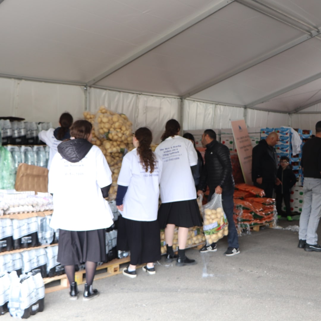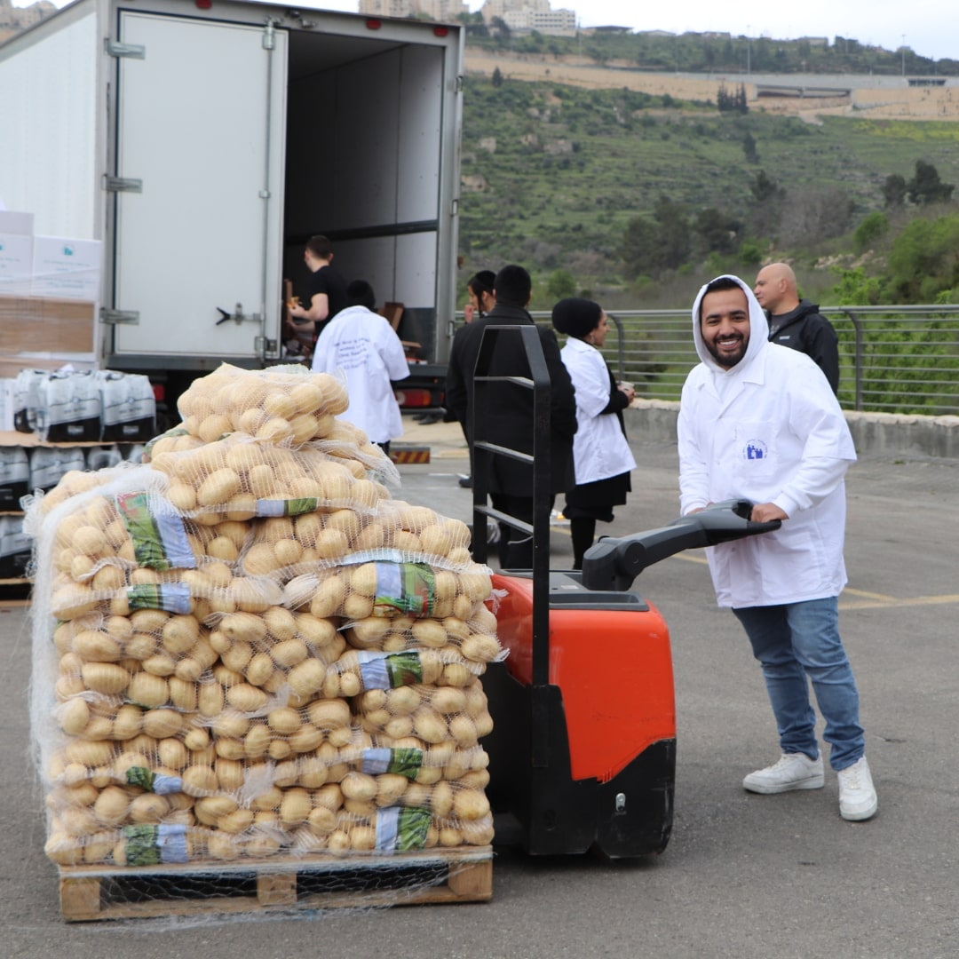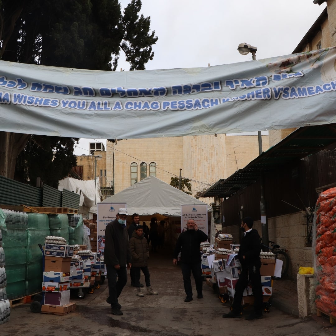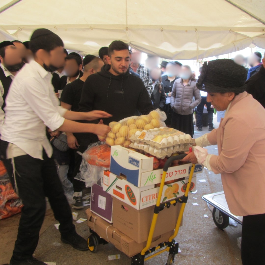 2 sets of dishes, 2 packages of matzah, 2 trays of eggs, grape juice, chickens, a sack of potatoes, carrots, apples, oranges, bananas—and many more essentials.